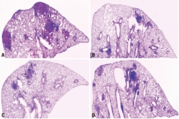 經(jīng)強(qiáng)毒結(jié)核分枝桿菌氣溶膠感染后的肺部組織病理學(xué)表現(xiàn)