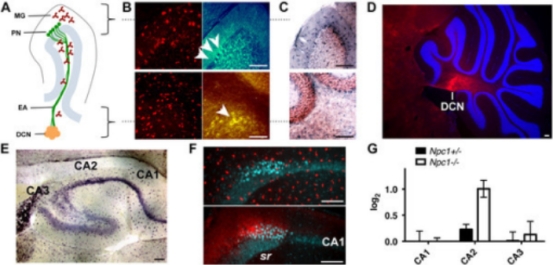 NPC神經(jīng)退行性小鼠模型中C1q的分布